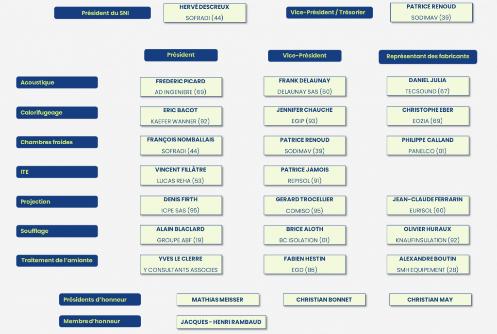 Fondé en 1936 par les calorifugeurs et les constructeurs de chambres froides, le SNI réunit 200 adhérents répartis en trois collèges : entreprises, fabricants/distributeurs et membres associés (organismes de formation, experts juridiques, etc.) qui réunissent leurs compétences pour valoriser leurs métiers tant dans l’industrie que dans le secteur du bâtiment.